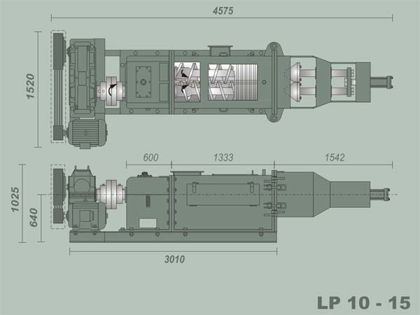 10 -15 Tons FFB/Hour Horizontal Double Screw Worm 278 mm Diameter x 1020 Long 10 - 13 rpm 4575 mm approx. 1520 mm approx. 1025 mm approx. 22 KW/30 HP TEFC Motor 5000 kgs approx. |